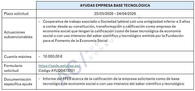 Ayuda a empresas de base tecnológica de economía social del Principado de Asturias: